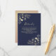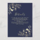 Ajoutez une touche de raffinement supplémentaire à votre suite mariage avec cette élégante carte de détails bleu marine. Décoré d'oeuvres d'art florales dorées de style vintage, c'est le moyen idéal de partager des liens vers des sites mariages, des informations sur la réception, des hébergements ou d'autres instructions pour les clients.