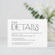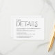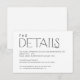 Cette carte de détails mariage est conçue parfaitement pour équilibrer élégance et simplicité, capturant l'essence du minimalisme moderne. Objets correspondants dans notre magasin Cava Party Design.