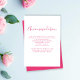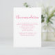 Détails de l'hébergement mariage carte d'enceinte avec une police de caractères élégante et un design typographique moderne et propre. La couleur rose-chaud se retrouve sur le dos de la carte. Ce morceau est prêt pour vous à customiser avec les détails de votre journée spéciale. Faisant partie d'une collection en croissance constante, veuillez consulter la collection Elegant Pink Floral Watercolor Mariage Collection pour compléter les articles.