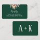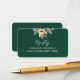 Carte d'information mariage vert foncé avec fleurs d'abricot aquarelle et feuillage de jardin. Un design botanique contemporain simple mais élégant, inspiré du style boho vintage.