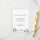 Cette élégante mariage de verdure qui souhaite une bonne carte est parfaite pour un mariage simple. L'élégant design moderne présente un agencement botanique naturel d'eucalyptus, de feuilles et de plantes avec un accent subtil de lave-linge vert menthe. Personnalisez cette carte d'invitation avec vos noms, et un court poème de bienvenue.