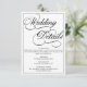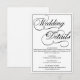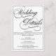 Une carte de détails mariage blanc formelle et élégante avec script de calligraphie noir.