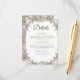 Partagez des informations importantes avec vos invités à l'aide de cette carte élégante de détails de mariage qui présente des oeuvres d'art vintages dessinées à la main dans des tons brun, beige et crème. Ce design intemporel est parfait pour les mariages classiques, rustiques ou neutres. Comprend des sections pour la réception, l'hébergement et les détails de votre site Web mariage. Coordonné avec beauté avec invitation et cartes RSVP correspondantes. Imprimé sur du papier de qualité supérieure pour une finition raffinée et sophistiquée, vos invités adoreront.
