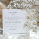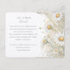 Cette carte d'information mariage magnifiquement conçue présente un thème délicat et élégant de marguerite sauvage, parfait pour un jardin romantique ou mariage rustique. Le côté avant présente un agencement exquis de marguerites blanches avec des touches de jaune doux, d'ivoire et de vert sage. Le style aquarelle peint à la main ajoute une touche de charme artistique, donnant à la carte une sensation intemporelle et éthérée. Le côté arrière poursuit le thème avec des illustrations marguerrières plus détaillées, complétées par un arrière - plan beige subtil et une calligraphie fluide. Cette carte est idéale pour partager des détails supplémentaires avec vos invités mariages, y compris les directions, les détails de cérémonie et les préférences de cadeau. La combinaison d'illustrations botaniques et de typographie classique crée une esthétique sophistiquée et sereine qui complètera parfaitement vos invitations de mariage.