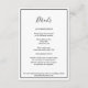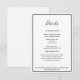 Cette élégante carte d'enceinte de détails mariage moderne est parfaite pour votre mariage moderne minimaliste. Ce design comprend une calligraphie simple en noir avec un arrière - plan neutre blanc pour correspondre à votre mariage traditionnel classique ou à votre mariage boho minimaliste au printemps, en été, en automne ou en hiver. N'hésitez pas à nous contacter pour toute question concernant ce design.