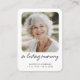 Honorer la mémoire de votre être cher avec la Carte murale In Loving Memory Modern. Cette tenue attentive comporte une photo personnalisée au dos et peut être personnalisée avec un poème, une prière ou un message sincère. Conçue dans un style moderne et élégant, cette carte porte-monnaie est un moyen significatif de chérir et de partager des souvenirs, offrant le confort à la famille et aux amis.