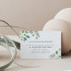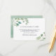 Conçue pour s'harmoniser avec notre collection de mariages d'aquarelle Eucalyptus, cette carte botanique élégante présente des vaporisateurs de feuilles d'eucalyptus peints à l'aquarelle entourant vos détails d'hébergement de l'hôtel mariage.