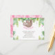 Mignonne maman et bébé paresseux dans la jungle accroché sur une vigne avec un texte pour apporter un livre. Une petite demande - nous espérons que ce n'est pas trop difficile, S'il vous plaît apporter un livre au lieu d'une carte. Votre livre sera chéri Que vous soyez bien aimé ou flambant neuf, Et à chaque fois que nous le lisons, nous penserons à vous! insérez une carte conçue pour correspondre à nos invitations de douches paresseuses!