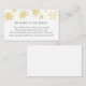 Une carte d'insertion de demande de livre pour le baby shower. Avec des flocons d'or et du poème : "UNE PETITE DEMANDE, NOUS ESPÉRONS NE PAS TROP DUR S'IL VOUS PLAÎT APPORTER UN LIVRE PLUTÔT QU'UNE CARTE QU'ILS VONT CHERCHER LE LIVRE, BIEN AIMÉ OU NEUF S'IL VOUS PLAÎT SIGNER L'INTÉRIEUR AVEC UN MESSAGE DE!"