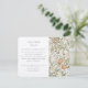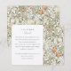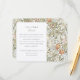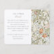 Cette carte de détail mariage, conçue avec soin, est un chef-d'oeuvre artistique qui communique avec grâce les détails les plus fins de votre journée spéciale. Inspirée par les oeuvres intemporelles de William Morris, la carte présente un motif floral élaboré dans des pastels doux de pêche, de rougissement et de bleu défraîchi, avec des touches de contours brun terreux qui apportent profondeur et sophistication au design. Le côté gauche de la carte, avec un arrière - plan crème immaculé, contraste élégamment l'extravagance florale et offre un espace clair et lisible pour des informations mariages supplémentaires. Cette carte est idéale pour partager non seulement les détails logistiques comme les directions et les détails de la cérémonie d'église, mais aussi des éléments personnalisés tels que les préférences de don, pour s'assurer que vos invités sont bien informés et peuvent apprécier l'attention derrière chaque aspect de votre mariage.