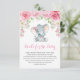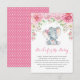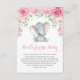 Carte adorable d'insertion de demande de livre de thème d'éléphant comportant un éléphant adorable de bébé et des roses roses élégants d'aquarelle. Perfectionnez pour le baby shower et le bébé arrosent !