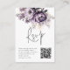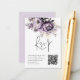 Lilac Florales violettes QR Code Mariage RSVP Invitation vos invités à répondre en ligne via cette petite carte de boîtier. De belles fleurs estivales sont au sommet. Ajoutez votre code QR à la page de réponse de votre site mariage. Une typographie informelle en noir pour le titre principal RSVP et le reste du texte qui peut facilement personnaliser.