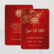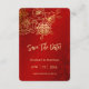 Ce mariage chinois traditionnel coffre-fort de la carte datte comporte une branche d'art de la ligne de cerisier doré et un symbole de bonheur double or sur un arrière - plan rouge chatoyant. Avec un titre "save the date" dans un élégant script manuscrit et un texte personnalisé dans une police sans serif moderne.
