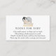 Une carte d'insertion de demande de livre pour le baby shower. Doté d'un pingouin d'aquarelle dormant sur une pile de livres avec poème : "UNE PETITE DEMANDE, NOUS ESPÉRONS NE PAS TROP DIFFICILE D'APPORTER UN LIVRE PLUTÔT QUE D'UNE CARTE, ILS CHERCHERCHERONT LE LIVRE, BIEN AIMÉ OU NOUVEAU S'IL VOUS PLAÎT SIGNER À L À L'INTÉE !"
