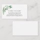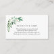 Une carte d'insertion de demande de livre pour le baby shower. Fleurs blanches, verdure et poème : "UNE PETITE DEMANDE, NOUS ESPÉRONS NE PAS TROP DUR S'IL VOUS PLAÎT APPORTER UN LIVRE AU LIEU D'UNE CARTE ILS SERONT CHERISER LE LIVRE, BIEN AIMÉ OU NEUF S'IL VOUS PLAÎT SIGNER L'INTÉRIEUR AVEC UN MESSAGE DE DE VOUS!"