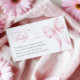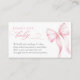 Encouragez les invités à apporter une douce histoire au lieu d'une carte avec cette carte de livres rose pour bébé. Avec un ruban délicat et un script romantique, cet encart apporte une touche douce et fantaisiste à votre douche bébé fille. Un détail sincère pour compléter votre célébration à thème rose.