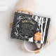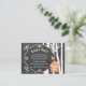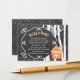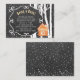 Chalet de charbon gris rustique hiver pays des merveilles apportez une carte d'encart avec cadre tourbillon, une maison de pain d'épice orange, bouleaux et chute de neige