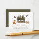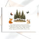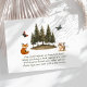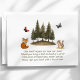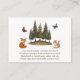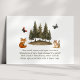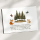 La carte d'insertion "Woodland Animals Books for Baby" intègre magnifiquement des éléments de la nature dans une célébration de shower de bébé. Elle présente une scène charmante à l'aquarelle avec un écureuil, un renard et des papillons voltigeants, nichés parmi un bosquet de conifères. Cette carte invite judicieusement les invités à apporter un livre au lieu d'une carte, suggérant des titres bien aimés ou nouveaux pour aider à construire la première bibliothèque du bébé, ce qui en fait un ajout significatif à la célébration.