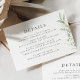 Boho Sage Greenery Botanical Olive Elégant Simple Détails Mariage Carte de boîtier. Style bohème arrangé botanique minimaliste Détails Carte avec des botaniques vert sauge boho élégants et simples en aquarelle imprimée à la main. L'arrière - plan d'aquarelle verte est magnifique pour les mariages boho et les mariages verts. Carte de détails modifiable pour les mariages du printemps, de l'été, de l'automne et de l'hiver.