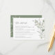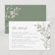 Boho Sage Greenery Botanical Olive Elégant Simple Détails Mariage Carte de boîtier. Style bohème arrangé botanique minimaliste Détails Carte avec des botaniques vert sauge boho élégants et simples en aquarelle imprimée à la main. L'arrière - plan d'aquarelle verte est magnifique pour les mariages boho et les mariages verts. Carte de détails modifiable pour les mariages du printemps, de l'été, de l'automne et de l'hiver.