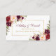 Aquarelle mariage Floral Bourgogne et registre d'or Insérer carte Bourgogne Script