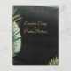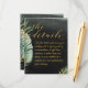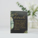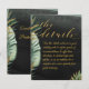 Une carte de boîtier Details lorsque vous devez joindre des informations supplémentaires à côté de votre faire-part de mariage. Une élégante faire-part de mariage tropicale aquarelle peinte avec un fond de lavage d'aquarelle noire spectaculaire avec des feuilles de palmiers verts magnifiquement peints et des accents dorés chatoyants. Une calligraphie de script swash en or vif annonce vos détails mariages.