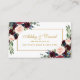 Aquarelle mariage Floral Bourgogne Bleu et Gold Registre Carte d'insertion - Script or, Bleu Retour