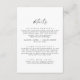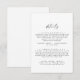 Cette carte de boîtier de détails de mariage de script moderne est parfaite pour un mariage minimaliste. Le design simple en noir et blanc présente une typographie industrielle unique avec style boho moderne. Personnalisable dans n'importe quelle couleur. Gardez le design minimal et élégant, en l'état, ou personnalisez-le en ajoutant vos propres graphiques et artwork.