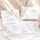 Boho Blush Rose Rose Floral Sage Olive Green Botanical Elégant Mariage Carte Détails. Bouquet rose bohème Détails Carte aux fleurs rose vif et élégantes et botaniques verdoyantes en aquarelle imprimée à la main. La couleur rose vif de l'arrière - plan est magnifique pour les mariages modernes boho et les mariages floraux. Carte de détails simple et imprimable pour les mariages du printemps, de l'été, de l'automne et de l'hiver.
