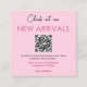 Ce carte de visite imprimé tendance est conçu pour une entreprise de commerce électronique comme une boutique, un magasin Etsy ou toute autre petite entreprise. Vous pouvez décrire vos derniers "nouveaux arrivants" et ajouter un lien vers votre site Web avec le code QR sur ces publicités imprimées.