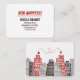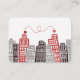 Joli motif de style rétro avec des bâtiments en caricature rouge et noir pour un nouveau faire-part d'adresse très exclusif. ♥ Collection correspondante pour la COORDINATION DES ARTICLES. ♥ Oeuvre originale de PUPSIKU STUDIO. Produit 100% exclusif.