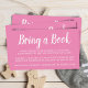 Typographie rose Apportez un livre au lieu de la carte baby shower de boîtier carte. Cette typographie rose et blanche apporte une insertion d'invitation à livre est parfaite pour un baby shower moderne. Envoyez ces cartes d'enclos avec vos invitations à la douche bébé et demandez à vos invités d'apporter un livre pour le bébé au lieu d'une carte. Le design minimaliste et simple pour une petite fille.