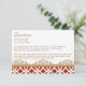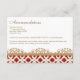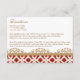 Elégant, élégant et beau carrelage marocain français inspiré directions mariage et les cartes d'hébergement avec un écharpe riche et répétitif couleur rouge et or géométrique motif design et or hued fleuris. Cette carte d'hébergement haut de gamme et luxueuse est parfaite pour un mariage marocain, des nuits arabes ou d'Aladdin, une fête d'anniversaire ou tout événement spécial. Le dos de ces cartes personnalisées et fantaisistes peut être personnalisé avec les noms de la mariée et du marié sur le design imprimé ruban. Oeuvre et design © Chrissy H. Studios, LLC. Tous droits réservés.