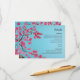 Romantique cerisier rose fleuri plein de fleurs et de pétales soufflant dans l'air. Peint en aquarelle comme une oeuvre d'art. Il s'agit d'une invitation design moderne avec script et texte combiné en gris foncé. (La couleur du texte est personnalisable). L'arrière - plan a une légère texture de papier et un dégradé bleu.