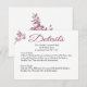 Cette carte de mariage Charming Details fait partie de la collection de faire-part de mariage Rose Delight. Cette carte Details présente un motif de rose burgundy vintage mis en valeur sur un fond rose crémeux. Le verso de la carte présente un graphique de rose burgundy assorti. Vous pouvez personnaliser cette carte avec tous les détails que vous souhaitez transmettre à vos invités. La rose au verso peut être retirée si vous avez besoin de plus d'espace.