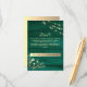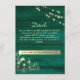 Elégante, moderne, rustique, vert mariage détails carte avec site web, dentelle dorée dorée et lumières à cordes.