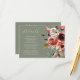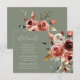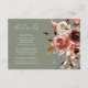 Partagez facilement des détails mariages importants grâce à cette élégante carte verte à la sauge, dotée d'un magnifique bouquet floral à l'aquarelle dans des tons chauds et terreux. Parfait pour inclure des informations sur les lieux, les hébergements ou votre site Internet mariage, cette carte ajoute une touche romantique et cohésive à votre suite de papeterie. Customisez facilement pour convenir à votre fête.