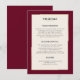 Ce design simple avec une bordure bordeaux est la carte de détails parfaite. Il vous permet d'avoir suffisamment d'espace pour inclure tous les renseignements importants tels que les renseignements sur l'hébergement, le transport et le registre de votre mariage. Les champs de texte sont modifiables pour répondre à vos besoins. Cela donnera à vos invités des informations utiles pour votre jour de mariage.