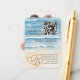 Dirigez vos invités vers votre site Web mariage avec cette carte d'enceinte sur le thème de la plage, avec des vagues d'aquarelle, des coeurs de sable et un code QR scannable. Une touche moderne pour les mariages de destination et les cérémonies du front de mer, parfaite pour partager des liens RSVP, des détails d'événement ou des registres.