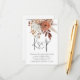 Terracotta Florals QR Code Mariage RSVP Invitation vos invités à répondre en ligne. De belles florales automnales sont au sommet. Ajoutez votre code QR à la page de réponse de votre site Web mariage au verso. Une typographie informelle en noir pour le titre principal RSVP et le reste du texte qui peut facilement personnaliser.