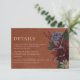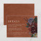 Partagez les informations importantes en style avec cette carte de détails en terre cuite avec des fleurs moody et un charme rustique. Idéal pour les itinéraires, les hébergements ou les détails du site Web mariage, et conçu pour correspondre à la suite d'invitation complète.