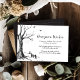 Envoyez vos souhaits à vos invités en ajoutant cette carte de voeux de lune de miel avec votre faire-part de mariage. Le design gothique simple comprend des arbres esquissés, des chauves-souris et une toile d'araignée. L'arrière est décorée d'un cadre blanc sur un arrière - plan noir. Les articles de mariage de coordination sont disponibles (vendus séparément). Les articles correspondants se trouvent dans notre collection "All Hallows Eve".