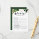 Qui sait que la mariée est la meilleure ? Ajoutez cette carte amusante et ludique à votre douche nuptiale. Il présente des feuilles tropicaux aux accents tropicaux faux feuille d'or. Personnalisez en ajoutant un nom et un événement au verso de la carte. Cette carte de jeux pour deviner la nage verte est parfaite pour les douches à thème estivales et tropicales.