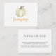 Encouragez les invités à aider à construire la première bibliothèque de bébé avec cette douce "Un petit Citrouille est sur le chemin" Livres pour la carte d'enceinte pour bébé. Doté de citrouilles d'aquarelle blanche douce et de teintes d'automne chaudes, cet encart est un complément bien pensé à vos invitations à la douche bébé. Demandez délicatement un livre préféré à la place d'une carte, créant une collection durable d'histoires remplies d'amour et de souvenirs. Coordonnée avec la suite de baby showers Little Citrouille complète pour une fête cohésive et charmante.
