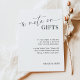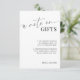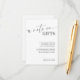Cette insertion de carte "A Note On Gifts" est idéale pour communiquer vos préférences de cadeau mariage. Avec un design minimaliste, cette carte de boîtier invitation peut être customisée pour demander un cadeau monétaire ou un message "pas de cadeau, s'il vous plaît". Ajoutez-le à votre suite d'invitation pour un détail élégant et soigné.