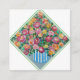 Vase de roses Détail d'une peinture d'Anna Casey Bordure verte à l'envers prêt à ajouter votre propre texte