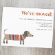 Doté d'un chien Dachshund amusant et excentrique, parfait pour les amoureux de les chiens qui veulent partager leurs nouvelles passionnantes avec une touche d'humour. L'avant présente une illustration fantaisiste d'un Dachshund portant des tricots rayés brillants et ludiques. Que vous voyagiez à travers la ville ou à travers le pays, ce faire-part est un excellent moyen de tenir vos amis et votre famille au courant de votre nouvelle adresse. Préparez-vous à remuer votre queue en excitation ! Art original de Nic Squirrell.