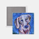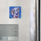 Cet aimant présente ma peinture d'un dachshund, "Lavender Doxie".