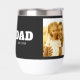 This wine tumbler features a customizable photo of you and your child. Also features black slab serif lettering that says 'Dad', which you can swap out for a different (short) term or name, followed by the established line, where you can add the year you became a father. All colors and elements can be edited in the Zazzle design tool. ••• For more Father's Day gifts, visit my store Zazzle.com/Yeah_The_Boys ••• For custom orders, message me on Zazzle