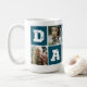Moderne, la tasse de collage photo présente un script de typographie en lettres brossées "Daddy" et 5 photos. Un cadeau idéal pour fête des pères, anniversaire aux papas ou comme gardien.